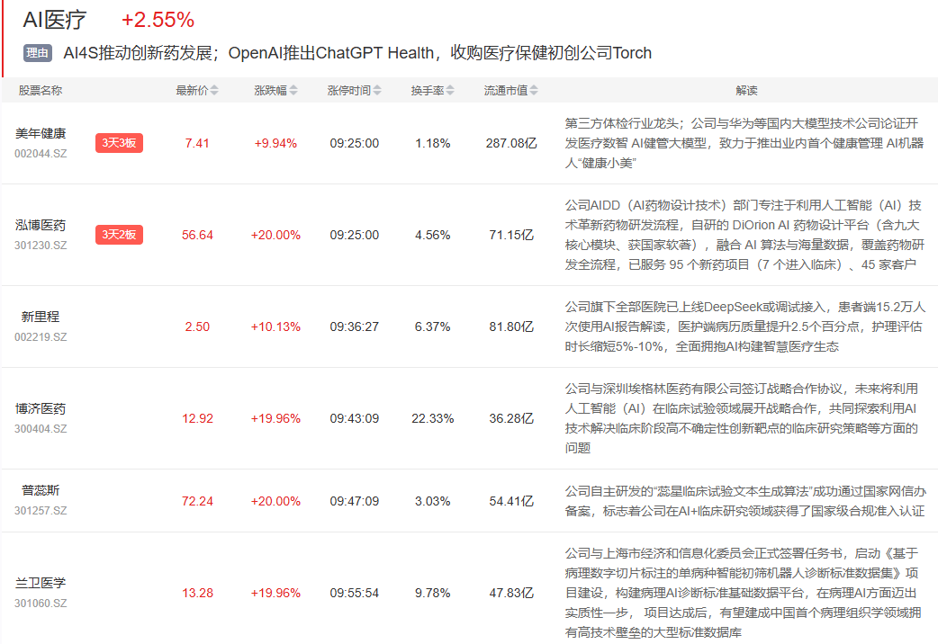 银河证券指出,升至每盎司4605美元。截至1月12日18时,每年近260亿美金的化合物筛选成本和约280亿美金的临床尝试费用也能够通过AI制药手艺节流出来。个股跌多涨少,沃尔玛将把谷歌的生成式AI聊器人Gemini整合进购物流程,变压器出口无望量价齐升。目前电力变压器和配电变压器的供应缺口已别离达到30%和6%,人工智能手艺取生物制药范畴的连系不只将药物发觉、临床前研究的时间缩短接近40%还能够节约临床试验阶段约50%-60%的时间。市场全天震动调整,美年健康、泓博医药、博济医药、兰卫医学等集体涨停?